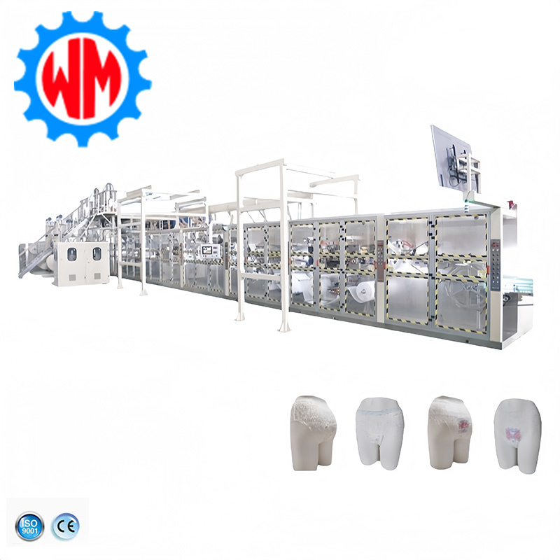 | 제품 구조 | 상단 및 하단 티슈, 면 코어 (SAP 혼합), 커버 시트 친수성 부직포, ADL (흡수 분배층) 부직포, 누출 방지 소수성 부직포 백 시트, 허리 밴드 부직포, 컬러 패턴 스티커, 탄성 허리 밴드, 폐기 스티커. |